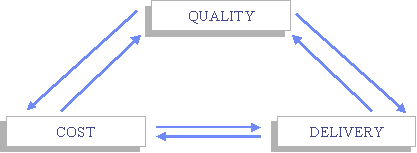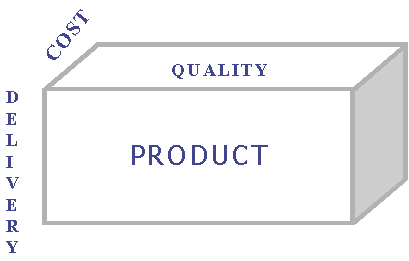 A commodity, be it a product or service, can be thought of as having three dimensions: QUALITY, COST, and DELIVERY. Quality is the attribute desired by the user or buyer that renders the product its primary value and usefulness to him. Proper tolerances, specifications, features, and varieties are examples of quality indicators. Cost, the second dimension, refers to the cost of producing and delivering the product to the customer; it has an impact on another cost: the cost to the buyer or the "price" he pays for the good. Cost affects the marketability of the product and the profitability of the producer. Delivery involves bringing the finished goods or services to the customer at the right time, at the right quantity or amount, at the right place.